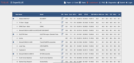 Benchmark de référence dans l’industrie, le classement GLUE est considéré comme le premier test à faire passer à un modèle NLP car il permet de déterminer l’efficacité d’un modèle de traitement du langage naturel.