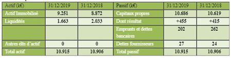 Le bilan simplifié au 31/12/2019 est le suivant :