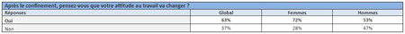 La crise sanitaire mondiale va-t-elle profondément changer les attitudes des travailleurs ? Il semble que plus de 63% des Français le pensent. Les femmes (72%) sont même beaucoup plus convaincues de ces bouleversements que les hommes (53%).