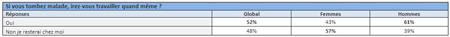 Avec la crise sanitaire, les Français sont-ils plus suspicieux des infections et des contaminations ? Apparemment, les femmes sont davantage soucieuses du bien être d’autrui puisqu’elles sont 57% à déclarer vouloir rester chez elles en cas de maladie alors que 61% des hommes iront travailler quand même malgré leur état.