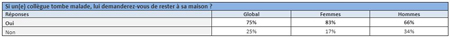 Pourtant, à l’inverse, une grande majorité des Français préfère que les autres personnes malades restent chez elles. En effet, c’est ce que déclarent 66% des hommes et 83% des femmes interrogées qui demanderont à leurs collègues fiévreux de rentrer chez eux.