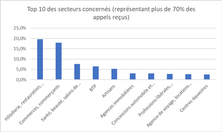 « On peut affirmer que tous les secteurs d’activité économique sont concernés par la crise actuelle. Toutefois, certains secteurs semblent plus particulièrement impactés par les mesures de confinement, en premier lieu ceux de l’hôtellerie-restauration (20% des appels) et du commerce de détail (18% des appels).