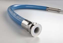 Aflex Hose, de Watson Marlow Fluid Technology Group, a proposé le flexible Bioflex Ultra en PTFE dédié aux applications de transferts de fluides biotechnologiques et pharmaceutiques. Le Bioflex Ultra, composé d’un corps interne en PTFE lisse garantissant un écoulement sans résistance et un nettoyage aisé, a été retenu pour son excellente résistance aux produits chimiques sur de large plages de températures de fonctionnement, et pour sa grande flexibilité permettant d’obtenir des rayons de courbure minimes. Equipé de raccords sanitaires Tri-Clamp revêtu PTFE, le Bioflex Ultra est certifié ATEX et FDA, ce qui n’était pas le cas des produits concurrents en place. Le parfumeur connaissait déjà la qualité des équipements de Watson Marlow Fluid Technology Group, puisque le site utilisait déjà pour d’autres applications des pompes CERTA 250 et des pompes 701 avec des raccords Q-clamp BioPure.