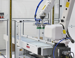 Particulièrement adapté à la palettisation de boîtes fermées pour les industries dynamiques des biens de grande consommation comme l’alimentaire, la pharma/para-pharmacie et la cosmétologie, ce nouveau palettiseur offre une prise de produits simple ou multiple, et peut traiter jusqu’à 12 boîtes fermées par minute d’une charge maximale de 15 kg.