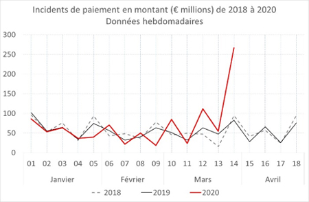 Depuis le début de la crise, les incidents se multiplient. Lors de la semaine du 30 mars, ceux-ci ont triplé par rapport à la même période en 2019 pour atteindre un montant d’environ 270 millions d’euros. Cette accumulation d’incidents à l’échéance de fin mars s’explique tout d’abord par des raisons spécifiques à la crise Covid-19 : les fermetures d’entreprises ou encore les défauts d’acheminement du courrier ne permettant pas de valider les ordres de paiement domiciliés. La volonté de certaines entreprises de retenir de la trésorerie en ne payant pas leurs fournisseurs est également à souligner. En parallèle, le nombre de sollicitations et de médiations adressées au Médiateur des entreprises chaque semaine a été multiplié par 10.