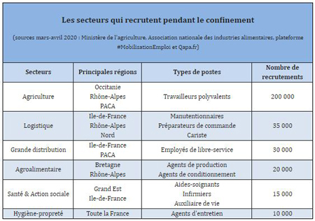 Enfin, un 6ème secteur commence tout juste à recruter suite l’annonce du gouvernement de la reprise à partir du 11 mai. C’est celui dédié à l’hygiène et à la propreté qui aura besoin de 10 000 agents d’entretien dans toute la France.