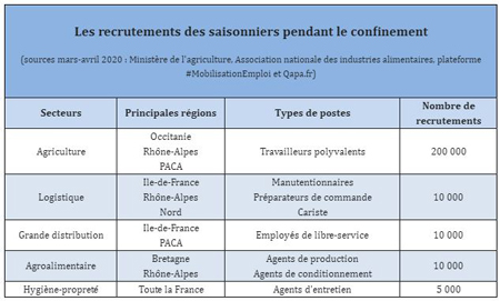 Même en cette période floue, le nombre de demandes pour la saison d’été est très fort avec plus de 250 000 recrutements sur 5 secteurs principaux : l’agriculture qui arrive en tête avec 200 000 demandes, suivi de l’agroalimentaire, la grande distribution et la logistique avec plus de 10 000 postes chacun. Enfin, le secteur de l’hygiène et propreté qui recrute 5 000 saisonniers.