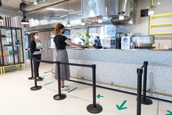 Assurer le respect des distances de sécurité avec l’installation de poteaux guide-file et de marquages au sol.