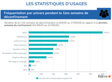 En effet, en analysant les usages de cartes de fidélité de son application shopping, fidme a pu vérifier la fiabilité de ces intentions post-confinement, en mettant avant le TOP 4 des univers de consommation les plus impactés lors de la première semaine de déconfinement (hors GSA).