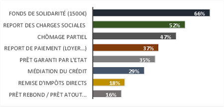 Les entrepreneurs ont très largement eu connaissance (96 %) et fait appel aux mesures de soutien mises en place par l’Etat et les collectivités.
