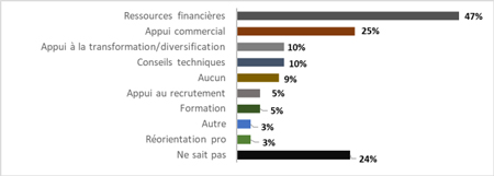 L’appui commercial est un autre besoin majeur, cité par un quart des répondants.