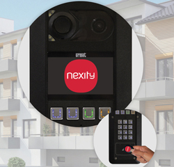 Les plaques de rue Urmet filaires et hybrides de la gamme 2Voice et Tel2Voice avec logo Nexity personnalisé sur l’afficheur