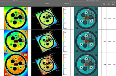 La principale nouveauté réside dans le système d’éclairage qui projette une multitude de franges déformées sous l’effet de la topographie de la surface à analyser. Ces déformations sont ensuite analysées par triangulation afin de déterminer l’altitude de chaque point de la surface.