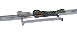 C’est un chenal de guidage normalisé en deux parties pour les chaines porte-câbles TSUBAKI KABELSCHLEPP, il peut être adapté de manière flexible aux besoins de chaque applications. De conception modulaire, il est composé de deux parois latérales, de supports et du matériel de fixation requis. Plusieurs types de systèmes de chenaux peuvent être configurés à l’aide de pièces standards, notamment de modèles à quatre parois latérales. « Lorsque nous avons développé cette solution, nous nous sommes concentrés sur la réduction du nombre de pièces différentes et la réduction de la complexité de la conception », explique Werner Eul, responsable des chaines porte-câbles chez TSUBAKI KABELSCHLEPP. « Cela permet aux utilisateurs d’installer le chenal de guidage rapidement et simplement et de se procurer des pièces détachées facilement. » Particulièrement pratique : de nombreux composants peuvent être achetés en tant qu’ensemble, mais sont également disponibles individuellement sur demande.