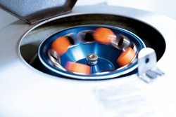 Dans ces laboratoires, le processus d’analyse est presque intégralement automatisé. Il commence par la préparation des échantillons de sang dans des tubes à essai dotés de codes couleur. Un lecteur enregistre le type d’analyse requis pour un tube à essai, et s’assure que le bras robotisé correspondant prenne le tube. Certains de ces échantillons sont centrifugés afin de séparer les constituants du sang. Les échantillons sont ensuite amenés au poste d’analyse au moyen de dispositifs de transport spéciaux, une bande transporteuse ou un petit chariot à roues motrices, par exemple.