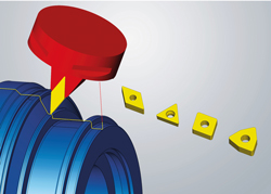 Il est désormais possible d’utiliser également des plaquettes rhombiques, T et W, en plus des plaquettes rondes pour le tournage-fraisage 3 axes simultané. Une évolution pour toutes les stratégies de tournage garantit que les engagements et dégagements peuvent être ajustés individuellement à l’aide de courbes dessinées. Cette possibilité permet d’optimiser l’usinage de pièces comportant des zones difficiles d’accès - un contrôle des collisions est effectué pour tous les mouvements malgré les interventions manuelles (vidéo).