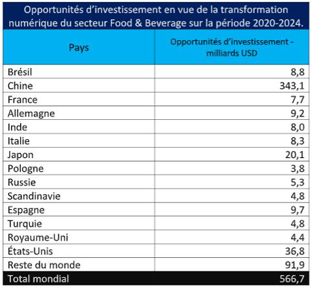 SFS a développé un modèle pour estimer le montant des investissements nécessaires pour déployer la technologie d’Usine 4.0 dans l’ensemble de l’industrie agroalimentaire et des boissons à l’échelle internationale sur une période de cinq ans (2020-2024).
