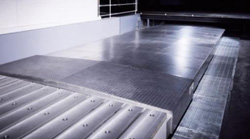 Les vitesses de déplacement les plus élevées se produisent sur le support de fraisage (axe Y) et les tables de la machine (axe X). Afin d’éviter les vibrations et les bruits de contact qui en résultent, les protecteurs télescopiques sont équipés d’ amortisseurs paraboliques spéciaux dans ce cas. Particulièrement pratique : les protecteurs télescopiques sont piétonnables et supportent une charge allant jusqu’à 100 kg.