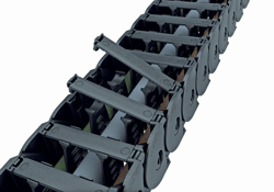 Le système d’entretoise de la TKK39 est également ingénieux : la chaine porte-câbles est équipée d’entretoises verrouillables pour une protection optimale du câble qui pivotent vers l’intérieur dans n’importe quelle position en fonction de la variante choisie. Des séparateurs amovibles ou fixes par incrément de 2 mm ainsi qu’une séparation en hauteur en plastique ou en aluminium permettent une séparation optimale des câbles.