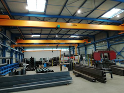 En 2018, COMEGE, pour répondre à un besoin grandissant d’industrialisation, a décidé de réunir ses ateliers de production dans un nouveau bâtiment de 11 000 m2. La proximité de l’atelier et du bureau d’étude sur un même site est un atout majeur pour l’entreprise. « Les compétences de notre bureau d’étude s’illustrent tout particulièrement dans une collaboration étroite avec l’atelier et ce, tout au long du processus de fabrication. Il est aussi l’interlocuteur fidèle et responsable de nos partenaires commerciaux. » citation COMEGE. Pour équiper ce nouveau bâtiment, COMEGE a fait appel à l’EUROPONT Levélec, qui lui a fabriqué et livré 11 ponts roulants, équipés de matériel de levage VERLINDE. La commande s’est répartie entre trois types de ponts avec des capacités de charge de 2 tonnes et une portée de 15 mètres, de 5 tonnes et de 6,3 tonnes pour une portée de 25 mètres.