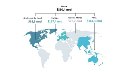 Premier d’une série, le rapport « Industrie 4.0 : Relever le défi » estime de manière prudente que le défi mondial du passage aux usines intelligentes dépassera les 400 milliards de dollars au cours des cinq prochaines années.Réduites à la moitié du « marché disponible », ces prévisions offrent une perspective très conservatrice sur l’ampleur de l’investissement financier nécessaire pour une pénétration du marché de l’ordre de 50 %. À elle seule, l’Europe représente des besoins en capitaux colossaux, de l’ordre de 137,4 milliards de dollars de ce total.