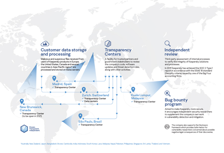 Début 2020, les Centres de Transparence Kaspersky précédemment ouverts à Sao Paulo et à Kuala Lumpur sont devenus pleinement opérationnels.