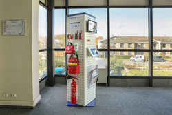 Secours : indispensable pour sauver des vies. De la trousse de secours au rince-œil, en passant par le défibrillateur et les deux extincteurs, l’équipement disponible sur cette façade est entièrement dédié à la prise en charge d’une victime lors d’un accident. Le vrai plus du TOTEM est par ailleurs de proposer deux talkies-walkies permettant à deux témoins d’agir rapidement. Sans oublier la présence d’un coup de poing d’alerte qui active une lumière bleue sur la partie haute du TOTEM afin qu’un maximum d’employés soient avertis de la situation et puissent intervenir.