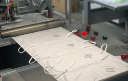 L’INSPEKTO S70 a été installé récemment pour l’inspection qualité des masques FFP2. Ce système doit notamment détecter les défauts de soudure par ultrasons des masques, du pontet nasal en métal, du logo de l’entreprise et CE, et de la soudure des attaches. L’inspection du pontet nasal est particulièrement importante, car les bandes métalliques défectueuses risquent d’endommager la machine de coupe sur la ligne de production.