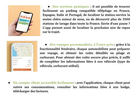 Si cette première version de l’application répond aux attentes prioritaires exprimées par les clients, elle a aussi pour vocation d’évoluer et de s’enrichir rapidement afin de simplifier leur mobilité en sens large, et ce, au-delà de l’autoroute : stationnement urbain, carburant, lavage, covoiturage, etc.