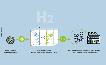 Pour faire face à la croissance de la demande alimentaire, le Groupe ADISSEO développe ses unités industrielles de production de méthionine tout en réduisant son impact environnemental. Pour atteindre cet objectif, la synthèse industrielle de méthionine nécessite un accès à l’élément hydrogène. Le projet CASHEMIR prévoit la construction par ENGIE Solutions d’une unité d’hydrogène vert alimentant les lignes de production d’ADISSEO. Cette approche s’inscrit complètement dans les ambitions Européennes du Green Deal.