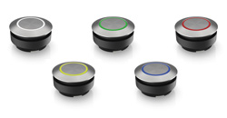 Ces nouveaux modèles sont équipés d’une élégante bague frontale rétro-éclairée et d’une surface à insert en inox V2A. Sa structure extrêmement plate permet au bouton d’affleurer à seulement 3,45 mm de la platine avant, ce qui lui confère une très belle esthétique. Ces boutons-poussoirs sont disponibles avec un éclairage de bague blanc, rouge, vert, jaune ou bleu. L’éclairage est assuré par une LED. Les boutons-poussoirs bénéficient d’un indice de protection IP65 en face avant et tous les auxiliaires de commande et de signalisation RAFIX 30 FS+ se montent en face avant avec un perçage de 30,3 mm. Les têtes de boutons-poussoirs doivent être associées à des éléments de commutation, soit brochables directement sur un circuit imprimé avec les Leds et tous les autres composants pour une profondeur arrière de seulement 15,7mm, soit en bloc contacts cylindrique à connexions rapides et d’encastrement arrière de 33,3 mm (modèles QC Quick Connection avec cosses classiques 2,8 x 0,8mm et clip LED enfichable en option). Tous les éléments de contacts existent en version contact or (max. 35v / 100 mA) ou contact argent (max. 250v / 4A).
