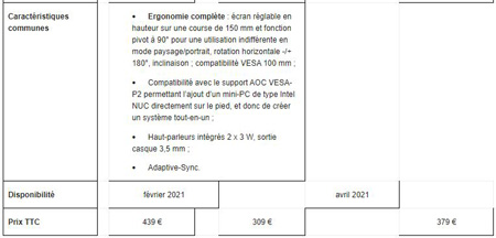 Tous dotés d’un châssis bord à bord sur trois côtés, ces trois nouveaux modèles disposent, pour un confort visuel optimisé, d’un mode Low Blue Light, pour une réduction des émissions de lumière bleue sur les ondes courtes et de la technologie Flicker-Free éliminant les scintillements.