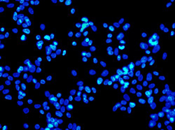 L’épifluorescence utilise une longueur d’onde à énergie élevée filtrée pour exciter l’échantillonnage à émettre une longueur d’onde à faible énergie. La longueur d’onde à faible énergie est filtrée jusqu’à la caméra. Dans ces conditions, l’exigence principale est la sensibilité car il est possible d’utiliser une lumière moins intense et moins dommageable sur l’échantillonnage. Une caméra dotée d’une excellente sensibilité peut fournir des images de grande qualité même lorsque la lumière émise est de faible énergie.