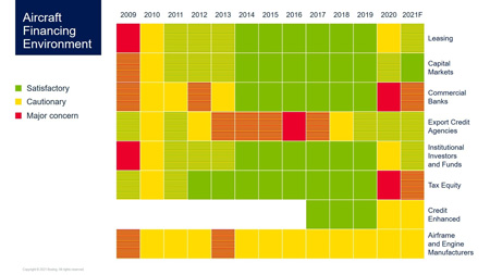 Les banques commerciales ont répondu aux besoins de liquidités du secteur aéronautique au début de la pandémie, mais l’endettement bancaire à long terme est à présent l’une des formes de financement les moins utilisées.