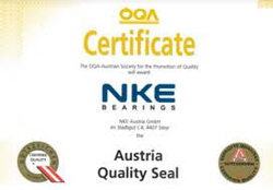 "L’audit a lieu tous les deux ans. Les critères d’attribution sont basés sur les normes internationales de gestion de la qualité ISO 9001, de gestion environnementale ISO 14001, de santé et de sécurité au travail OHSAS 18001 et comprennent également l’application des réglementations", explique Daniel Stöckl, responsable de la gestion de la qualité chez NKE à Steyr. "Pour pouvoir utiliser ce label de qualité, il faut que plus de 50 % de la valeur ajoutée ait lieu en Autriche." Non seulement la production et la fabrication sont évaluées en termes de valeur ajoutée, mais aussi le développement, le marketing, les ventes, les achats, la logistique et le conditionnement des produits et services. "Le label de qualité autrichien est un certificat important qui nous démarque de nos concurrents", déclare Matthias Ortner, directeur adjoint de NKE. "Cette distinction corrobore notre vision : Des solutions de roulement innovantes, personnalisées et de haute qualité, fabriquées en Autriche."