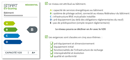 Avec des niveaux allant de D à A, il vise à encourager la capacité croissante des services d’électromobilité offerts par les bâtiments.