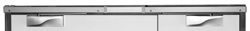Lorsque la porte est maintenue en position ouverte par les retenues électromagnétiques, une simple pression sur un bouton intégré au bandeau suffit à libérer les vantaux sans avoir à forcer.