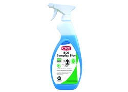 L’ ECO complex blue de CRC Industries est un nettoyant compatible avec la plupart des revêtements, y compris les plastiques et les surfaces peintes, et respectueux de l’environnement ; il est biodégradable > 64% selon OCDE 301B. Sa formule a été améliorée, elle est 40 % plus efficace : un solvent dissout les salissures et un tensio-actif les piège ensuite à la surface du liquide nettoyant.