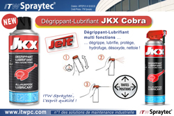 En effet, et outre une formulation enrichie pour plus d’efficacité, le nouveau dégrippant-lubrifiant JKX développé par ITW Spraytec sous la marque JELT se voit doté dans sa version en aérosol du tout nouveau diffuseur COBRA double spray lancé en début par la marque.