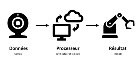L’algorithme doit être efficace pour maximiser la combinaison des données disponibles et de la puissance de traitement. Les sorties de l’algorithme sont des instructions qui peuvent être exécutées par la machine (robot ou voiture).
