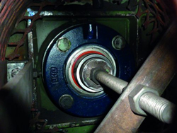 NSK a procédé à un examen complet de l’application, avec étude des températures et rapport sur l’état des roulements. L’examen a révélé que le roulement actuel était inadapté aux températures élevées du processus, et que les quantités et fréquences de lubrification étaient incorrectes. En conséquence, NSK a préconisé l’installation d’un roulement insert RHP Self-Lube® HLT personnalisé dans un logement RHP Self-Lube® en fonte FC, ainsi qu’une plaque d’adaptation sur mesure et une entretoise spéciale d’isolation thermique.