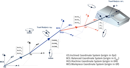 Le logiciel Flexium de NUM, version 4.1.00.00 ou supérieure, dispose désormais d’une IHM (interface homme-machine) spéciale qui permet de saisir les valeurs de correction correspondantes. Le système de coordonnées résultant des décalages et des rotations est appelé "système de coordonnées équilibré (ou BCS) et la fonction de compensation est connue sous le nom de 3DWPC (3D workpiece compensation).