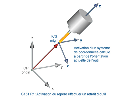 La programmation du RTCP par l’utilisation de vecteurs d’outils permet de déterminer la direction de l’outil par les composantes des vecteurs le long des axes X, Y et Z, rendant ainsi le programme d’usinage indépendant de la cinématique de la machine.