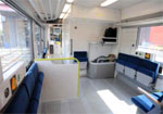 Les espaces conçus pour les personnes en fauteuil roulant sont équipés de boutons SOS avec interphone et disposent, en face, de deux sièges pour les accompagnants. Les écrans d’information sont visibles et même audibles depuis les places prioritaires. Enfin, les sièges ont été conçus pour que les chiens guides d’aveugle puissent s’allonger dessous. Des contrastes adaptés. Les contrastes ont été travaillés afin de rendre les accès et services plus visibles pour les personnes malvoyantes. Conformément aux recommandations des associations, le niveau de contraste est de 70% minimum.