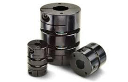 Les accouplements à lamelles se composent de deux moyeux en aluminium anodisé et d’un ou de deux disques élastiques fins (lamelles) en acier inoxydable. Avec leur faible longueur, les accouplements à lamelles à articulation simple s’adaptent idéalement aux applications présentant des contraintes d’espace. Cependant ils ne permettent pas de compenser un désalignement parallèle. Les concepteurs doivent donc s’assurer que ce type de désalignement soit parfaitement maîtrisé lors de l’utilisation d’un tel accouplement. Les accouplements à lamelles à articulation double sont réalisés avec une partie intermédiaire fabriquée en aluminium anodisé pour les couples élevés ou en acétal pour une isolation électrique. Cette conception permet aux deux jeux de lamelles élastiques d’agir indépendamment l’un de l’autre afin de répondre à tous les désalignements. Les options d’isolation électrique sont importantes dans certains systèmes d’essai, de mesure et d’inspection où une transmission électrique entre le moteur et la vis à billes, le moteur et le réducteur ou la vis-mère pourrait entraîner des défauts de lecture des données ou d’autres effets négatifs sur le système.