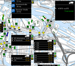 Dans le port, des panneaux d’information numériques (" Dynamic Information on traffic Volumes in the Area of the port ", DIVA) fournissent aux chauffeurs de poids lourds des informations relatives au trafic pour les guider. La solution de HERE Corridor Travel Time-as-a-Service permet d’afficher les temps de parcours estimés vers des destinations clés telles que les points de transfert de marchandises le tout sans avoir besoin de matériel supplémentaire.