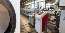 Une autre approche pour réduire les coûts ainsi que la consommation de polymère est le moussage physique des tuyaux. Dans ce cas, des gaz environnementaux comme le dioxyde de carbone ou l’azote sont injectés dans la fonte et mélangés à celle-ci dans l’extrudeuse. Lors de l’extrusion des tuyaux, ces gaz forment une mousse à cellules fines qui permet de réduire le poids et d’économiser de la matière plastique.