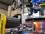 Un système de vision In-Sight de Cognex a été directement installé sur la tête de l’outil de préhension. Avec sa mise au point automatique, l’acquisition rapide des images et l’éclairage intégré, la caméra intelligente entièrement intégrée repère les freins à disque apportés sur un convoyeur. La caméra s’aligne sur le diamètre intérieur, puis les données des images sont transmises à la commande du robot en une fraction de seconde, ce qui permet aux puissants aimants de saisir rapidement les disques.