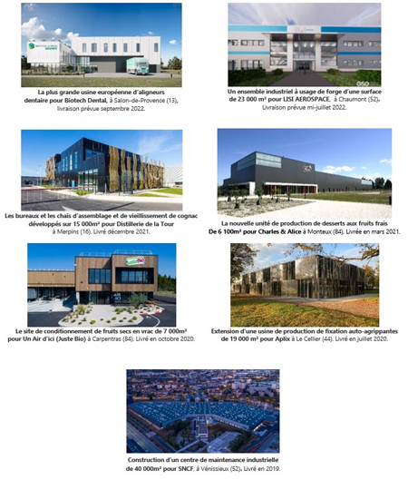 GSE est aujourd’hui fort de 15 implantations en France. Grâce à une équipe d’ingénieurs dédiée et spécialisée dans le marché, GSE propose des solutions immobilières innovantes et adaptées à la demande du client. Aux côtés d’acteurs tels que Lisi Aerospace, SNCF, Juste Bio, Kaneka Eurogentecs, Charles & Alice, Elis, Distillerie de La Tour ou encore le Groupe SEB, GSE intervient sur l’ensemble de la chaîne de valeur du projet, du montage de l’opération jusqu’à la livraison et l’accompagnement dans la mise en service du site, en passant par l’ingénierie de conception et la construction.