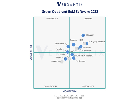 S’appuyant sur la contribution de centaines de professionnels très expérimentés, le rapport Verdantix, intitulé « Quadrant vert : Logiciels de gestion d’actifs d’entreprise 2022 » fournit un comparatif complet et très détaillé des principaux fournisseurs de logiciels adressant aujourd’hui le marché EAM. Le rapport comprend les profils de chacun de ces fournisseurs et décrit les différentes solutions logicielles qu’ils proposent.